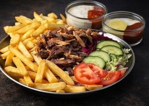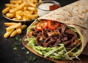 lawasz (140g)/ mięso/ frytki/ ser/ sos