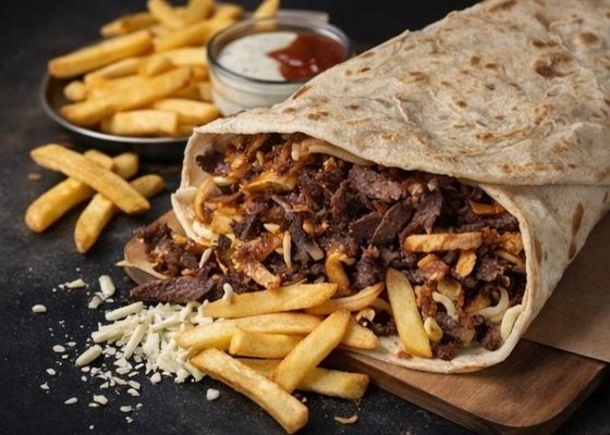 lawasz (140g)/ mięso/ frytki/ ser/ sos